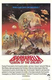 6 - Barbarella - (Century 41, a beautiful astronaut - Jane Fonda - is assigned to catch the criminal DuranDuran. in their quest she seduces an angel blind - John Philip Law - that follow. erotic comedy by Roger Vadim, based on a comic book . was a box office failure deserved, but agreat marketing success).